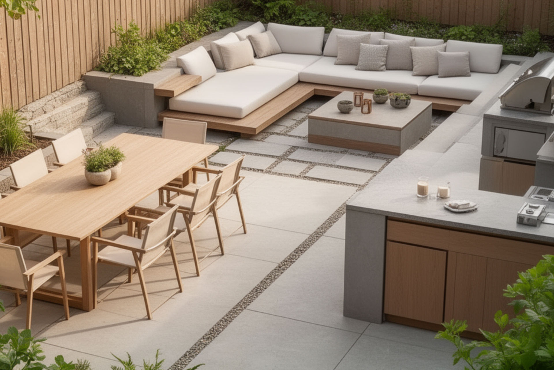 Backyards are being structured as defined zones rather than open lawn with scattered furniture. Dining areas are anchored. Lounge spaces are layered. Cooking zones feel integrated. When each area has purpose, the space reads as additional living rather than leftover yard space. Structure creates intention, and intention builds value.