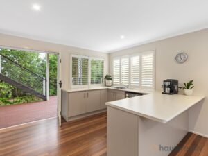 The main dining area is ideal for intimate family meals and the superb kitchen is ready to accommodate the home’s chef with stone benchtops, a Bosch dishwasher, gas cooktop, rangehood, glass splashback and excellent storage.
